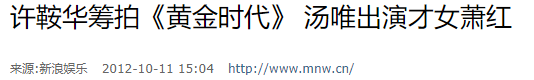 「完全就是萧红写的,一丁点汤唯都没有。」