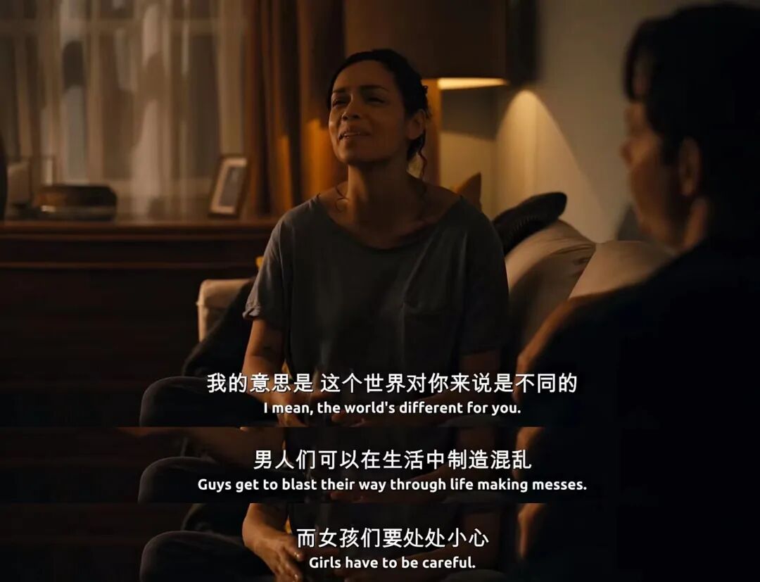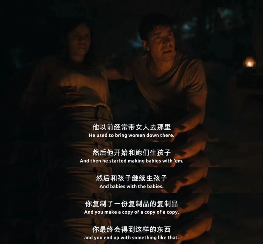 但这位陌生男性,越是表现得绅士无害,越是令人不安。这恰恰是因为性别暴力的存在,让男女在成长中产生的心理差异。开头女主和男房客的聊天中就有谈到,这个世界对男性和女性是截然不同两套规则。女主是绝对不可能在深夜让一个陌生男性在自己家留宿的。而即使女主犯蠢到主动让他进门,男房客也绝对不会像女主那么的警惕和再三犹豫。在女主向男房客,描述自己在暗门后发现的恐怖景象时,说自己看到了床、桶、摄像机、血手印等。说明在他的潜意识里,摄像机完全不是令人恐惧的东西。他也很难深切地体会到,摄像机所代表的被凝视和被观看的恐惧。正是因为生活中缺少这份身为弱者的畏惧,才让他毫无顾忌地冲入了黑暗。然而,这个让所有人都感到恐惧的畸形女怪,却流露出影片最动人的一面。在女主摔下去的瞬间,展现出了母爱的本能,冲下去垫在女主下面,救了女主一命。实际上,这位畸形怪物看似恐怖,同样也是性暴力的受害者。40 年前,这座房子的原本主人才是个真正意义上的变态怪物。他绑架年轻女性,囚禁她们,侵犯她们,让她们抚养自己的孩子。再侵犯她们的孩子继续生孩子,于是便诞生了我们所看见的畸形怪物。他们摆烂不作为的时候,女主仍然只身回到那个危险的地方救同伴。在最后,目睹了畸形怪物的残忍手段后,她还是勇敢地举起了手中的枪。为她狰狞的外表下残存的母性本能,也为同为女性无法摆脱的悲惨命运。回到开头,这种将性侵进行娱乐化和媚男化的做法也不是头一回了。