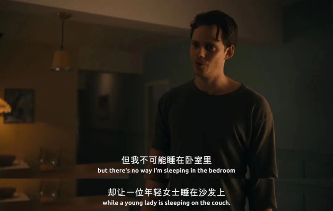 这部《野蛮人》的有点就在于此,它集中反映了女性的恐惧心理。本片中,饰演男房客的演员特意找来了一脸无辜、可爱迷人的「四妹」比尔·斯卡斯加德。尤其是当他招呼女主进屋,身子往后一撤,渐渐化为一团深黑的剪影。