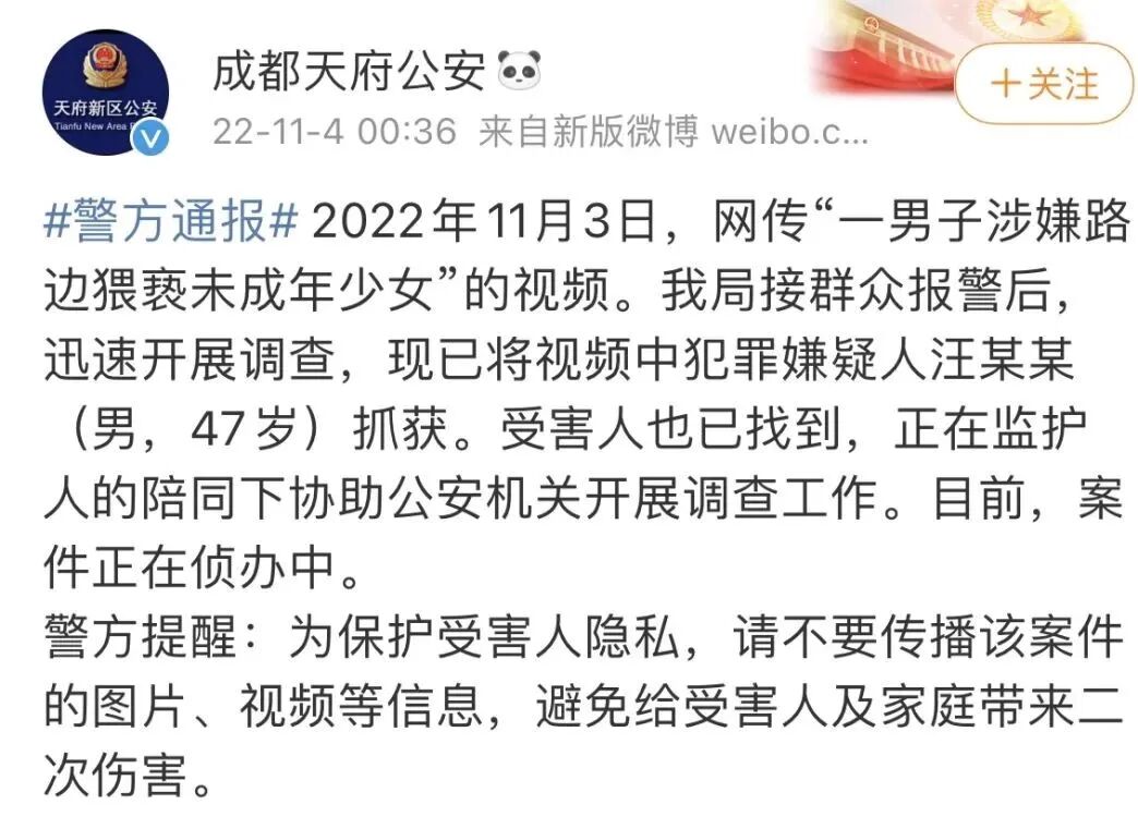 不久前,网上流出一名成年男子在路边猥亵少女的视频。