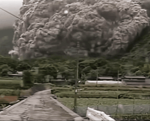 火山灰云能喷发到30、40公里的高度,碎屑涌浪的速度高达每小时一千公里。