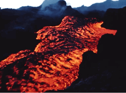 能看到滚烫的火山岩,如面包一般膨起,又像巧克力一般熔化。