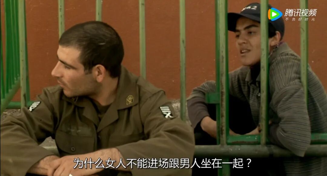 用石头原地画条中线,给每个人安排球员角色,现场还原一出比赛高潮。还有半路被揪出来的假冒士兵的女孩,也绘声绘色地补充战况。她们顾不上考虑自己所面临的麻烦,屏息听着收音机里的实况转播。警察停车买水时,她们也争分夺秒地盯着商店门口的电视直播。而是根据当天真实的比赛结果,顺其自然地引出了结局。警车也滞留在路上,热情的球迷邀请士兵一起跳舞,餐厅老板也慷慨地分发啤酒和美食。但并未消弱其中的批判性,反而让荒诞性和讽刺感愈发凸显出来。一个女孩只是想看场球赛,居然要如此大动干戈,还能闹出这么大的仗势。有人说,足球是男人的运动,即使是女人,也得是强壮的女人。女孩举出反例,也有女教练,也有技术流的瘦小男球员。女孩反问,看台上有日本女性,难道问题出在生错了国家?