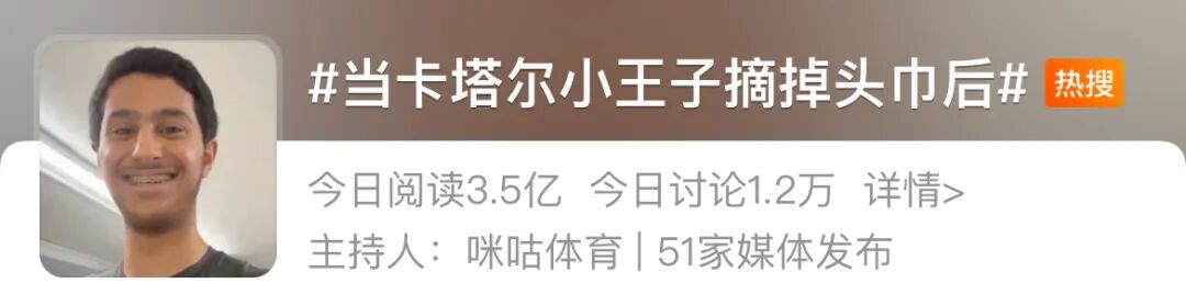 更何况,在卡塔尔王子摘个头巾都能上热搜的同时。