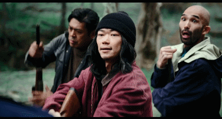 没想到,上一秒还凶神恶煞的惠介一行人,下一秒就笑着放下枪,说自己只是开玩笑的。