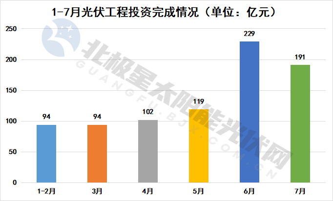 但从今年1-7月光伏工程投资额度和新增装机数据来看,似乎并未受此影响,据国家能源局发布1-7月份全国电力工业统计数据显示:7月份新增装机仍有6.85GW,工程投资也有191亿元,虽然对比6月份有所下滑,但考虑到6月份装机较高是因为部分企业为完成“630”这一节点。![]()