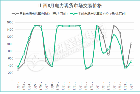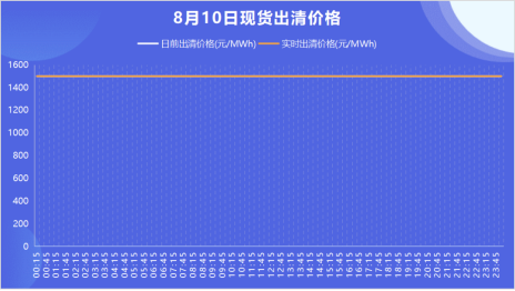 从8月9日至8月13日,电力现货市场价格连续五日达到或者触及山西省电力现货最高限价1500元/兆瓦时。以8月10日为例,省内现货日前与实时价格出现全天1500元/兆瓦时。