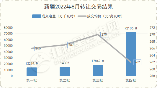 从8月的用电侧转让交易来看,四批次转让交易共成交电量7.21亿千瓦时,市场均价为262元/兆瓦时。由于市场供小于求,价格水平整体处于高位运行。