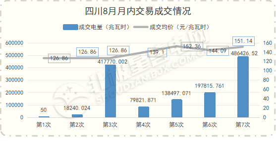 8月月内交易中,第4-7批次成交价格较前三批次有所增加,其中第5次和第7次月内交易成交价格超150元/兆瓦时。