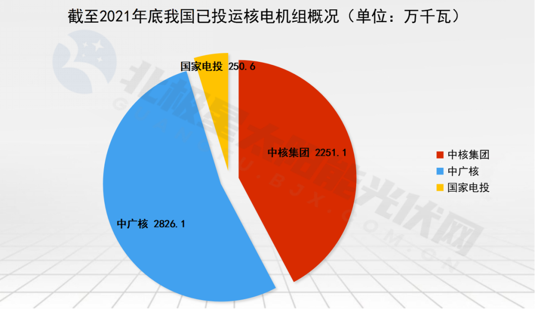 已投运机组分别是中核集团2251.1万千瓦;中广核2826.1万千瓦;国家电投250.6万千瓦。