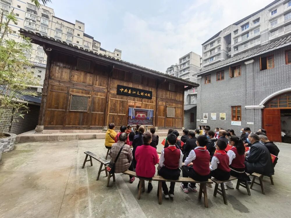 ▲在中共綦江支部旧址,古南街道机关党员干部、社区干部、基层党员、中共綦江支部旧址解说员、市民等正在收看党的二十大开幕会直播。