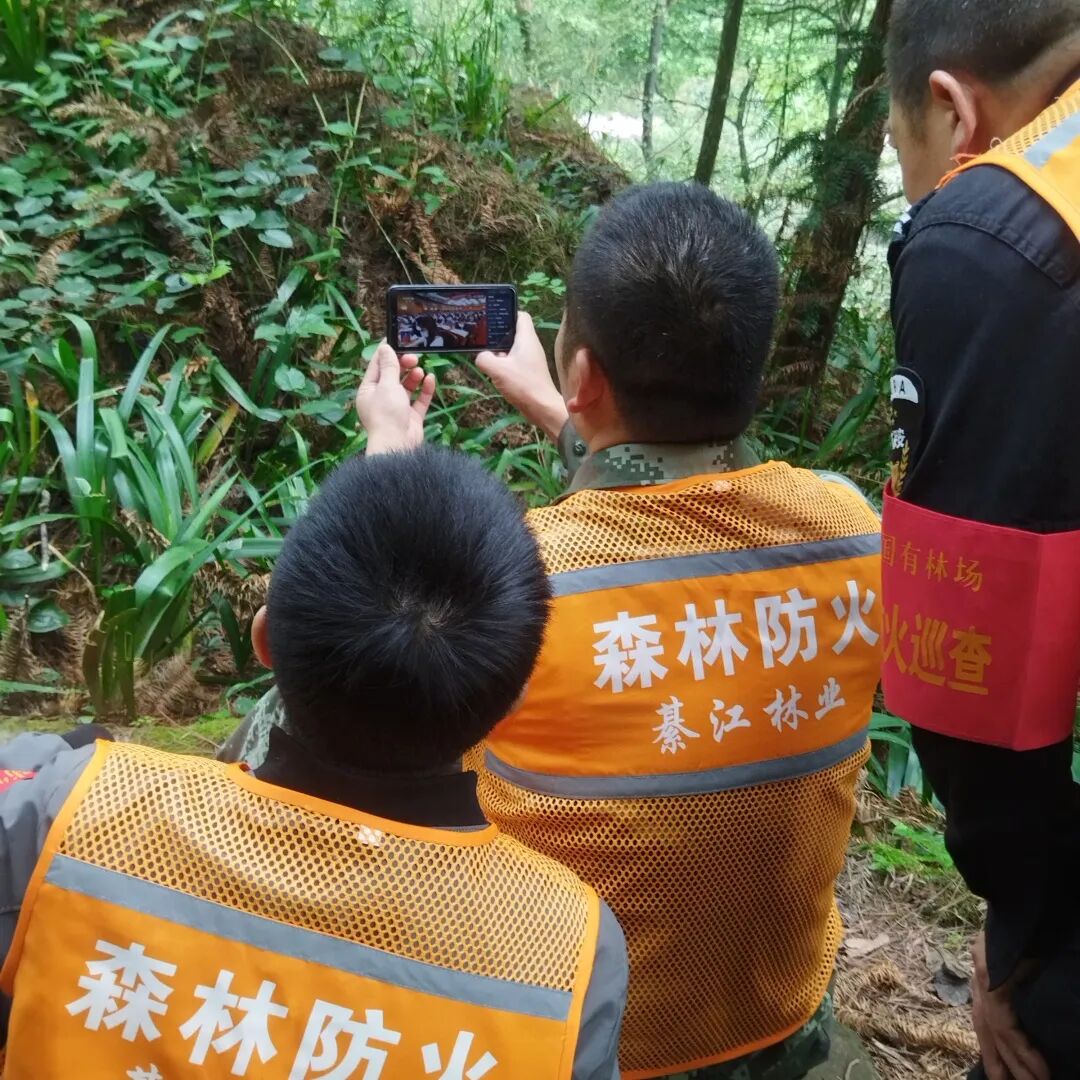 ▲区国有林场老瀛山管护站护林员们通过手机收看开幕会直播。