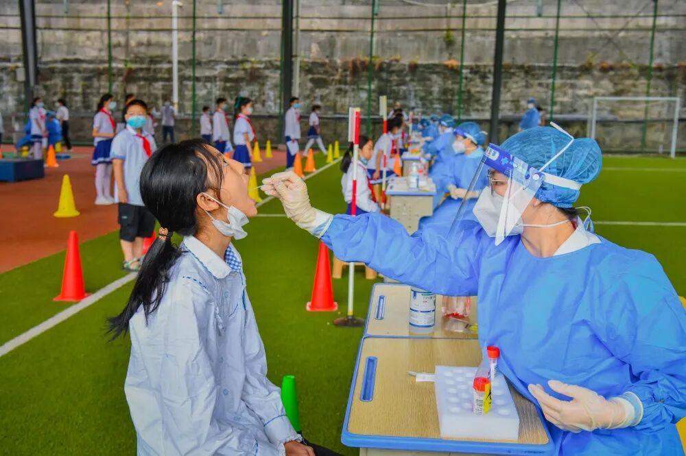 ▲通惠小学,学生进行核酸检测。特约通讯员 陶涵 摄