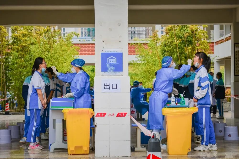 ▲通惠中学,学生正有序进行核酸检测。记者 陈星宇 摄