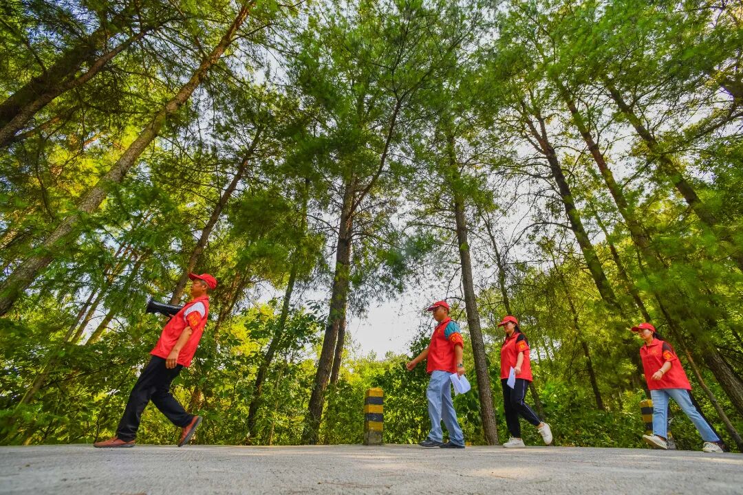 ▲村干部、党员志愿者组成的森林防火队正在巡山。记者 陈星宇 摄