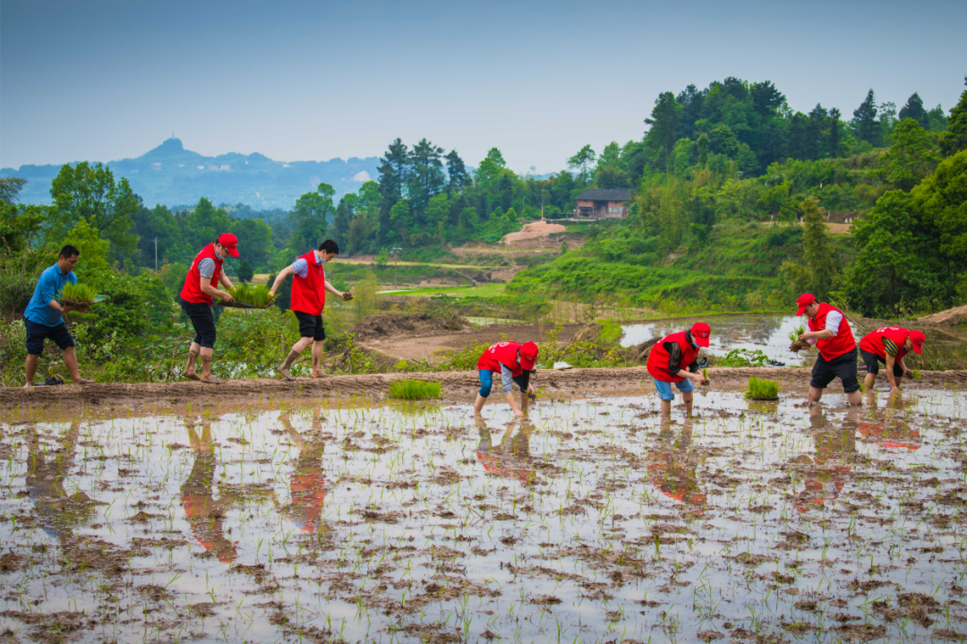 ▲青年纪检监察干部帮助村民插秧。记者 陈星宇 摄