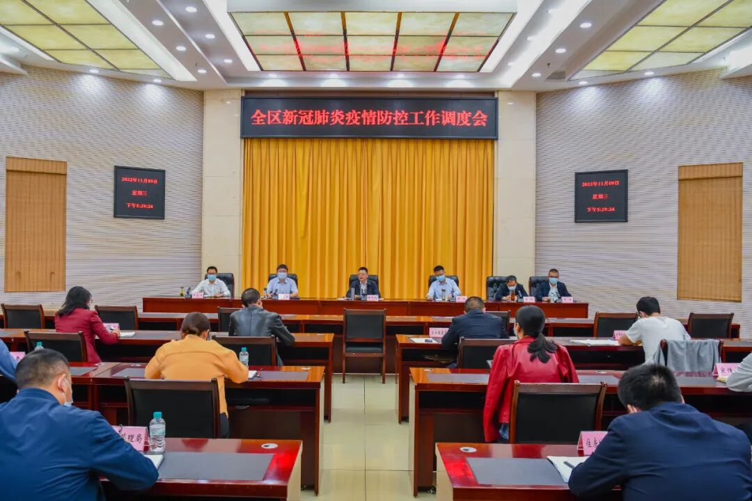 11月9日,全区疫情防控工作调度会召开,传达贯彻全市疫情防控工作电视电话会议精神,安排部署下一步工作。区委书记姜天波主持会议并讲话。他强调,要切实把思想和行动统一到市委、市政府对疫情防控的最新指示要求上来,充分认识当前疫情形势的极端严峻性、复杂性、艰巨性,采取更加坚决、更加果断的举措,全力打赢这场疫情防控攻坚战。