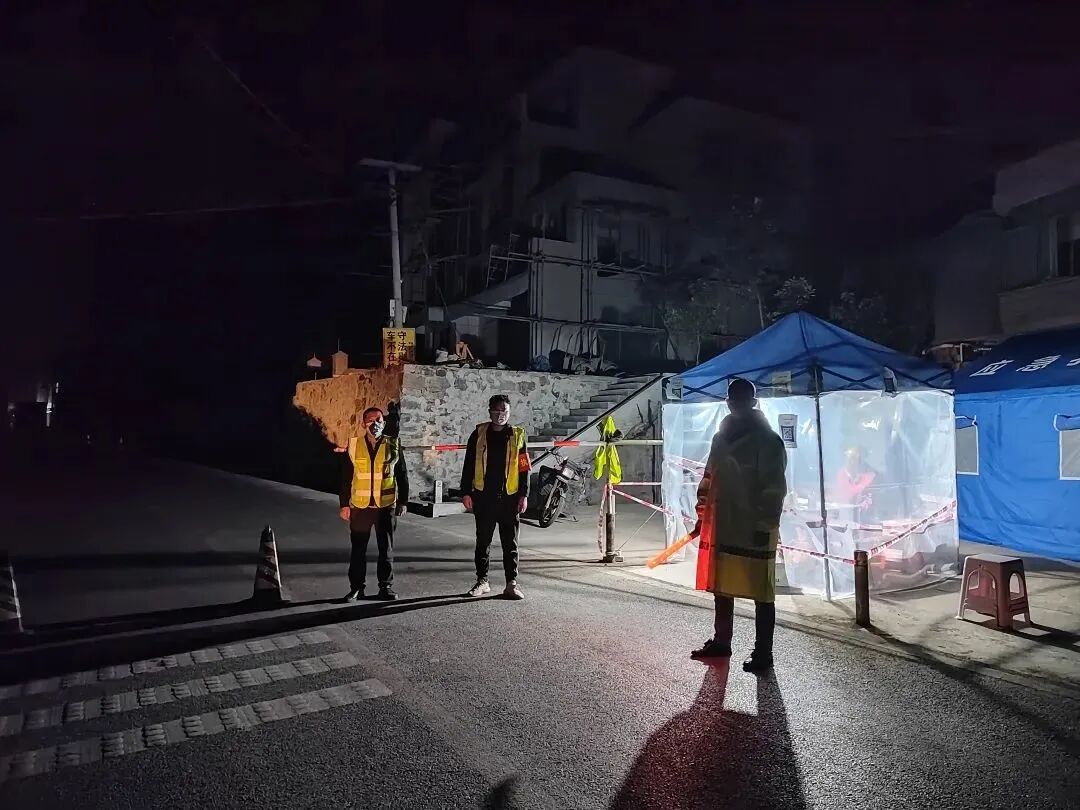 横山镇一小区在核酸检测中,筛选出一名新冠病毒阳性感染人员。为了及时堵住输入性传染源,该镇在进出横山的浸新公路、天仁公路的出入口设置了人员、车辆出入检查登记卡点,志愿者每天24小时值守,严格人员和车辆出入管控,防止外来人员输入新冠病毒。