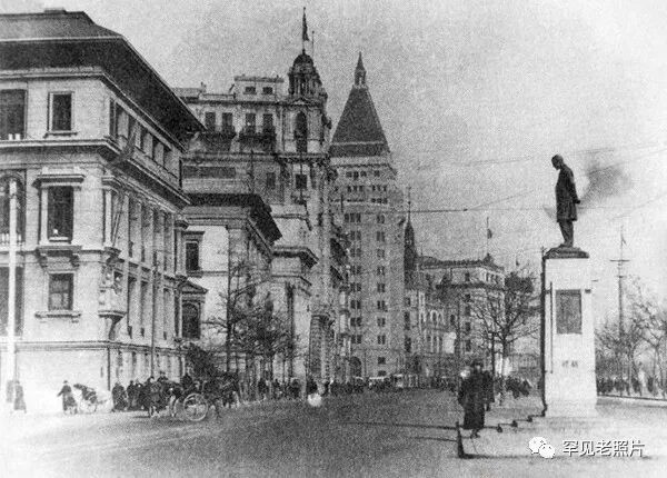 1914年,上海九江路外滩,赫德纪念像。