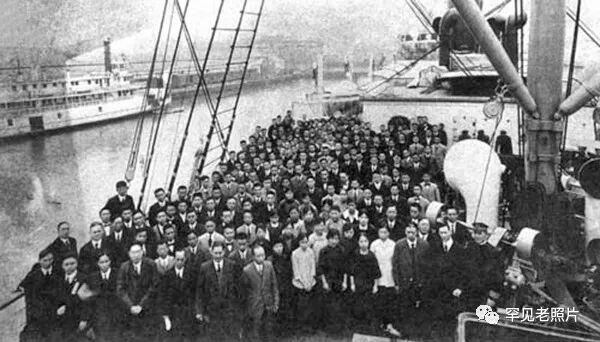 1918年,上海港口,清华留美学生在上海登船远赴大洋彼岸。