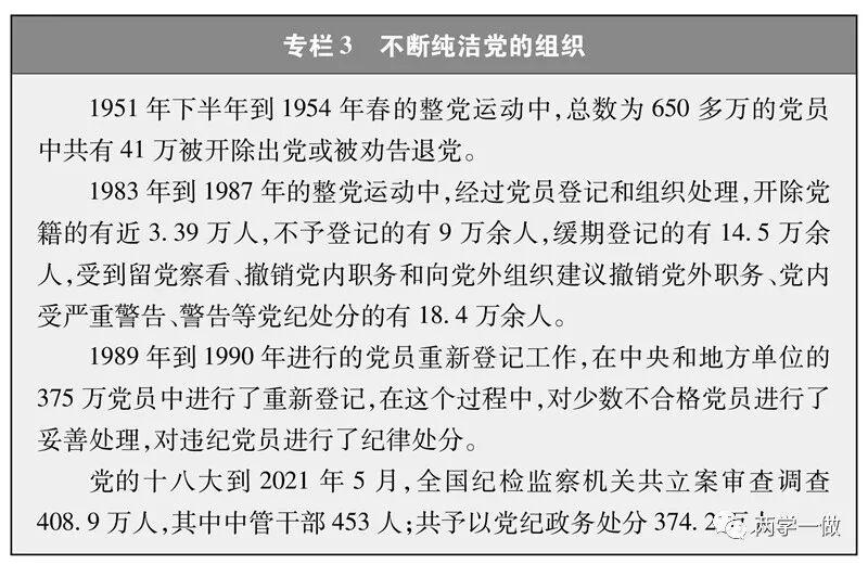 在革命、建设、改革中,中国共产党面临着形形色色的考验。外部世界的各种诱惑,管党治党的松懈松弛,党员思想行为的不良变化,都会对党的肌体造成侵害。党坚决同影响党的先进性、弱化党的纯洁性的各种现象作斗争,不断医治病症,坚决铲除毒瘤,保持肌体健康。