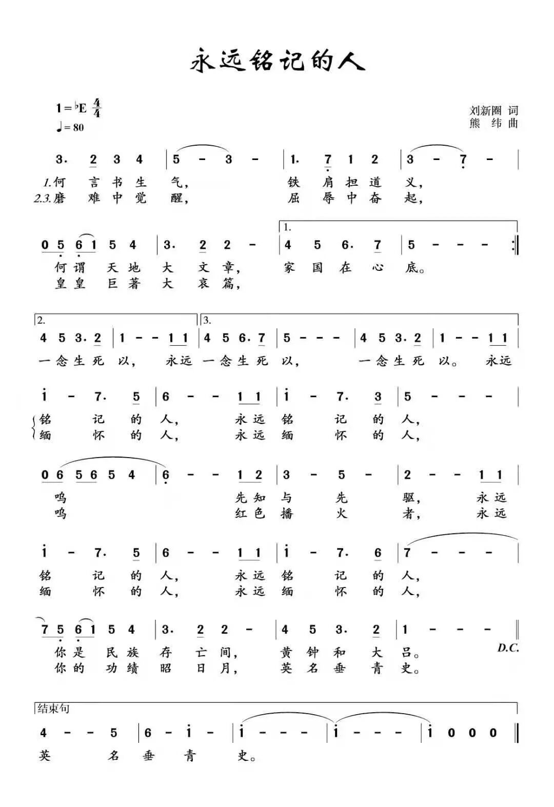 在由河北省音乐家协会出品,刘新圈作词、熊纬作曲、陈淼演唱的音乐作品《永远铭记的人》中,李大钊的故事再一次被唱诵,李大钊精神将传承下去,岁岁悠长……英雄不朽,精神永存。我们坚信,沿着中国特色社会主义道路继续前进,李大钊先生所梦想的“黄金时代”就在前方!