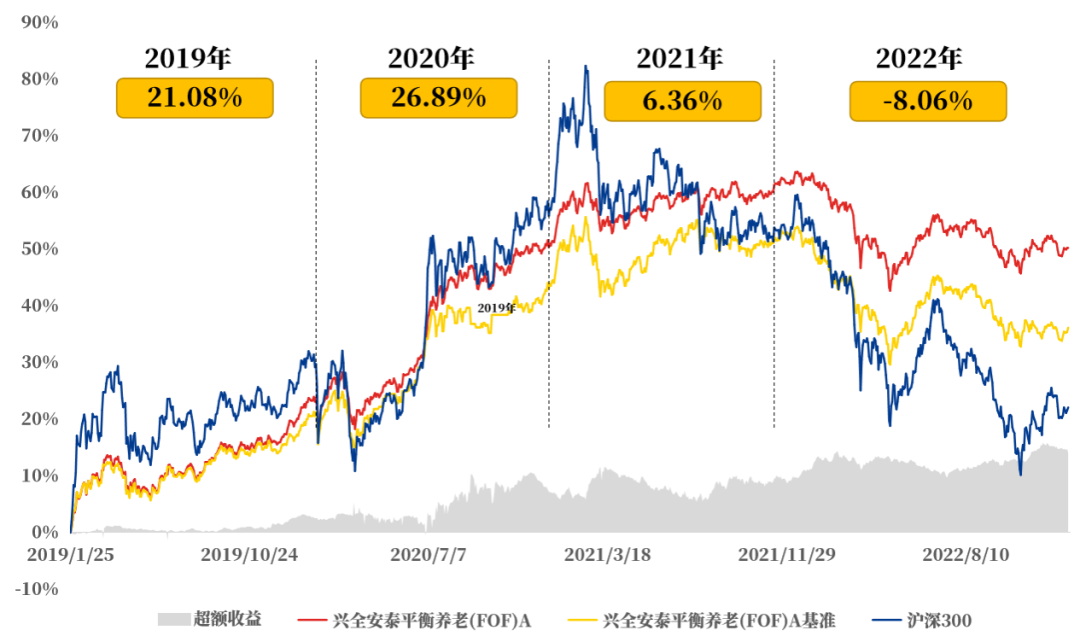 数据来源:兴证全球基金、银河证券中国公募基金长期业绩榜单、Wind,截至2022/12/31,业绩数据已经托管行复核,同类是指银河证券基金分类下10.11.3养老目标风险FOF(权益资产30%-60%)(A类)。