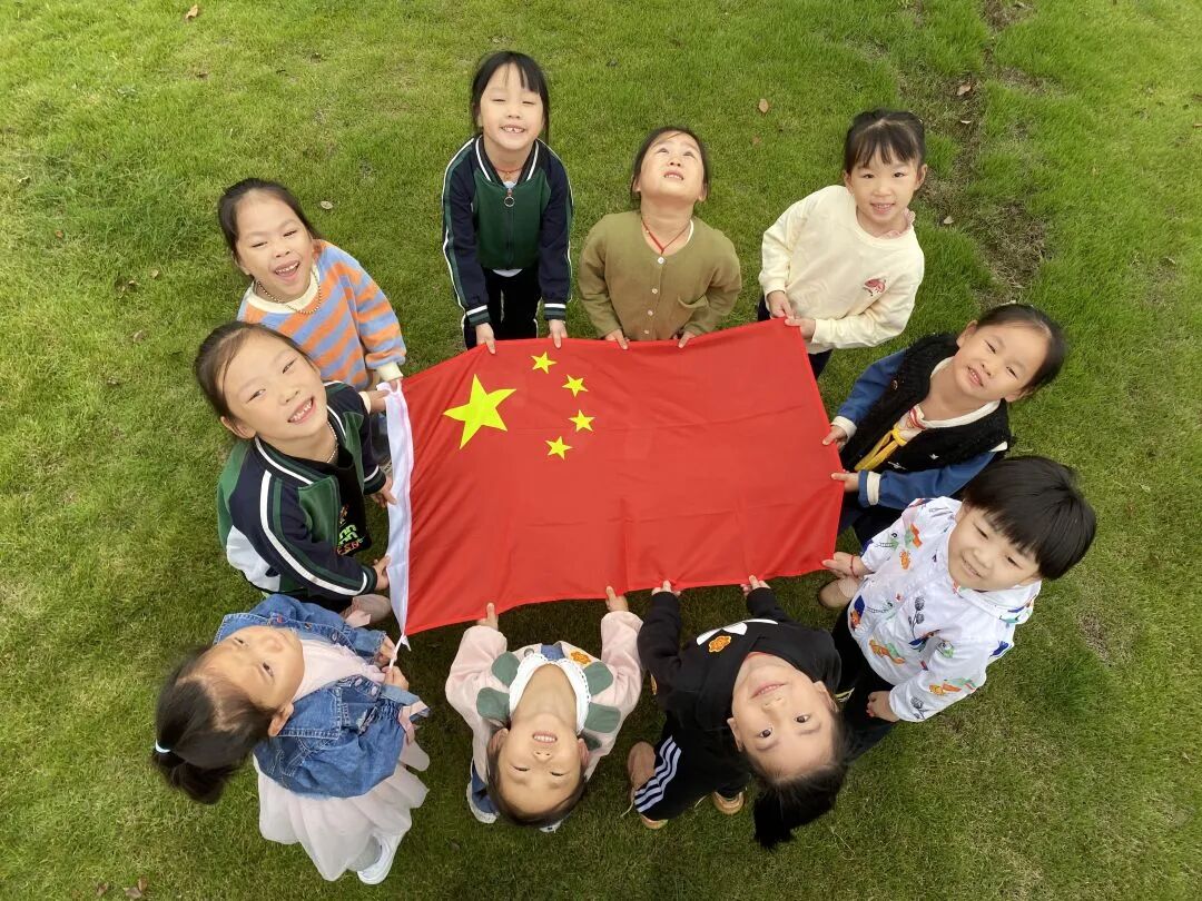 ▲孩子们的灿烂笑容,在国旗前绽放