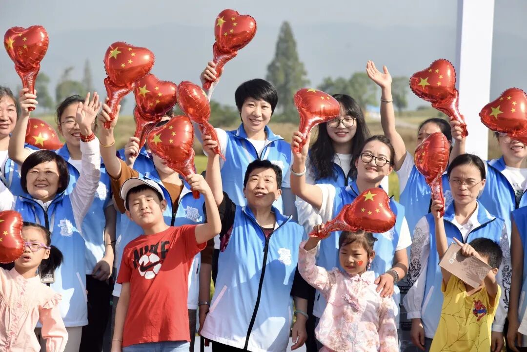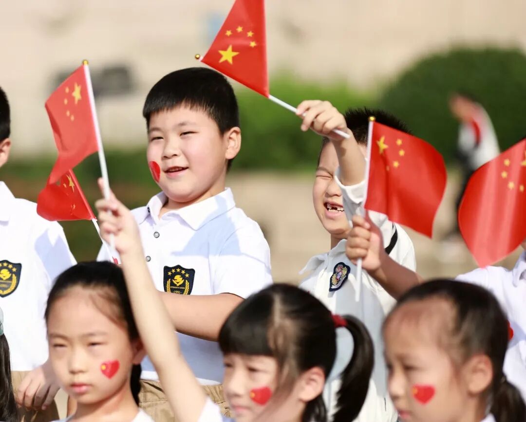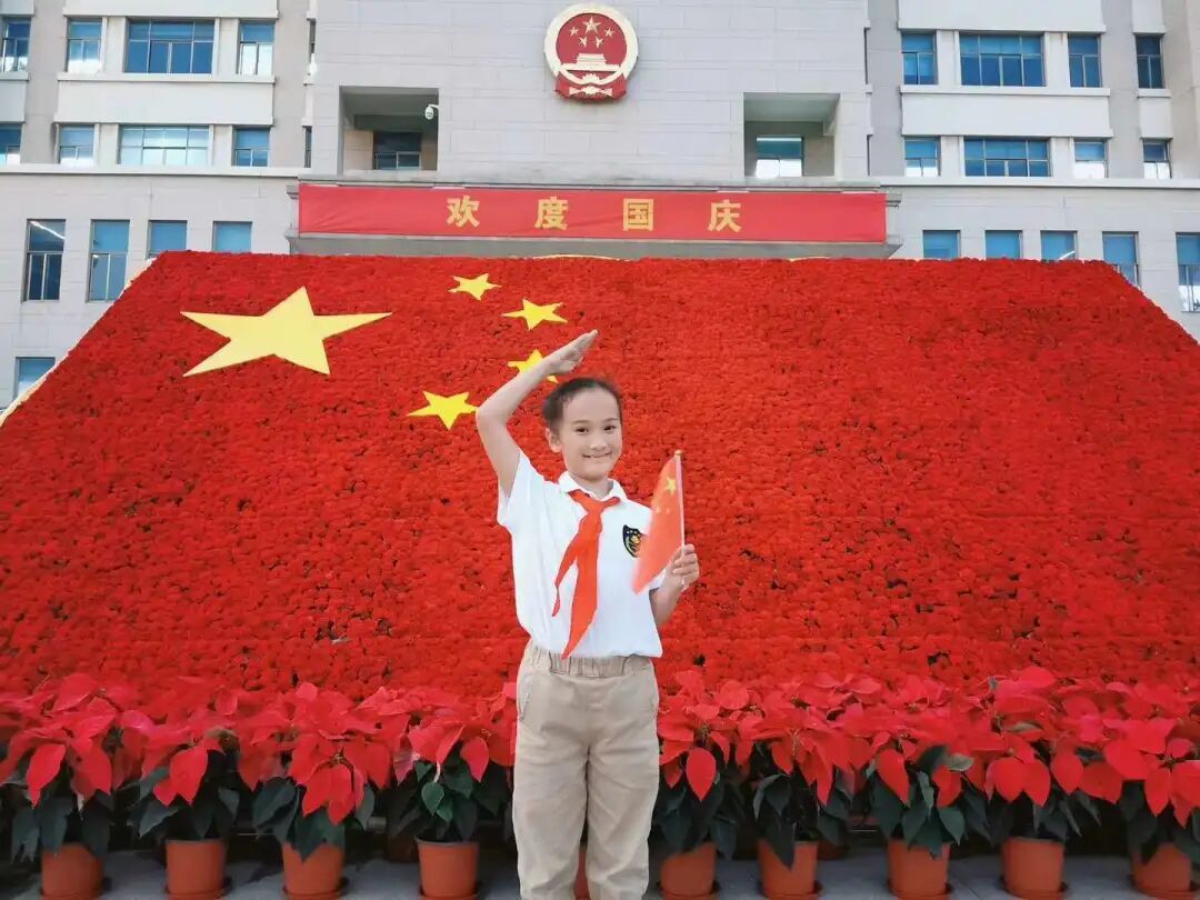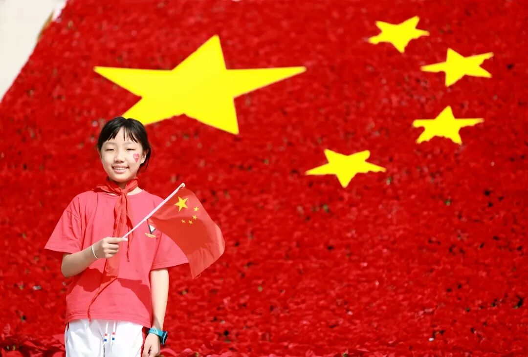 灿烂笑容,国旗前绽放!