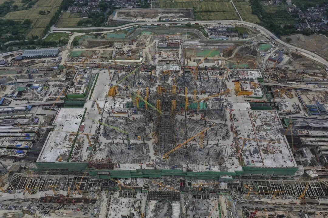 杭州西站枢纽是集铁路、轨道交通、长途客运、地铁、公交、出租及社会车辆等多种交通于一体的大型综合交通枢纽。目前站房候车层结构施工完成,网架桁架拼装累计完成46.5%。8月底站房主体结顶,进入内装修。