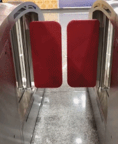 新的闸机门不再是原来的剪式,而是采取红色的摆式门,会像双开的推门一样打开。这样可以让闸机通道显得更宽,打开速度也更快,让乘客能迅速通过。