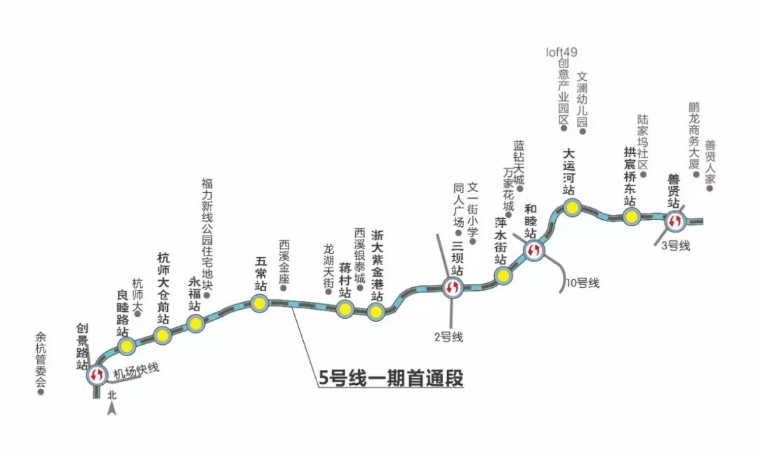 地铁5号线是一条串联起余杭、西湖、拱墅、下城、上城、滨江、萧山七城区并连接杭临、杭绍两条城际铁路的轨道交通大动脉,它还是杭州第一条通到城北的地铁线。地铁5号线一、二期计划于今年年底前开通试运营,其中首通段将力争于今年6月底开通。