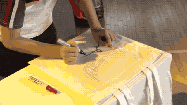 张凡邀请四位同学在印有良渚元素的帆布袋上作画,他语重心长地说:“希望同学们有一双发现美的眼睛,去创造和生活息息相关的美好事物。”