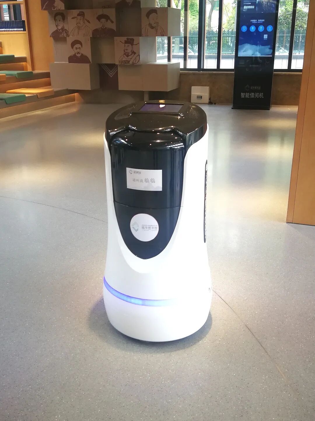晚上7时许,临平图书馆依旧有不少读者,陆续前来的读者一进大门就能体验到智慧化的科技服务。馆内采用AI人脸识别系统,在总服务台录入脸部信息后便可进入。门口导航机器人“临临”会在入口处引导读者去往图书馆的各个区域,初次前来的读者完全不用担心找不到路。