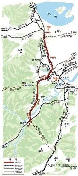 ▲湖杭铁路线路示意图