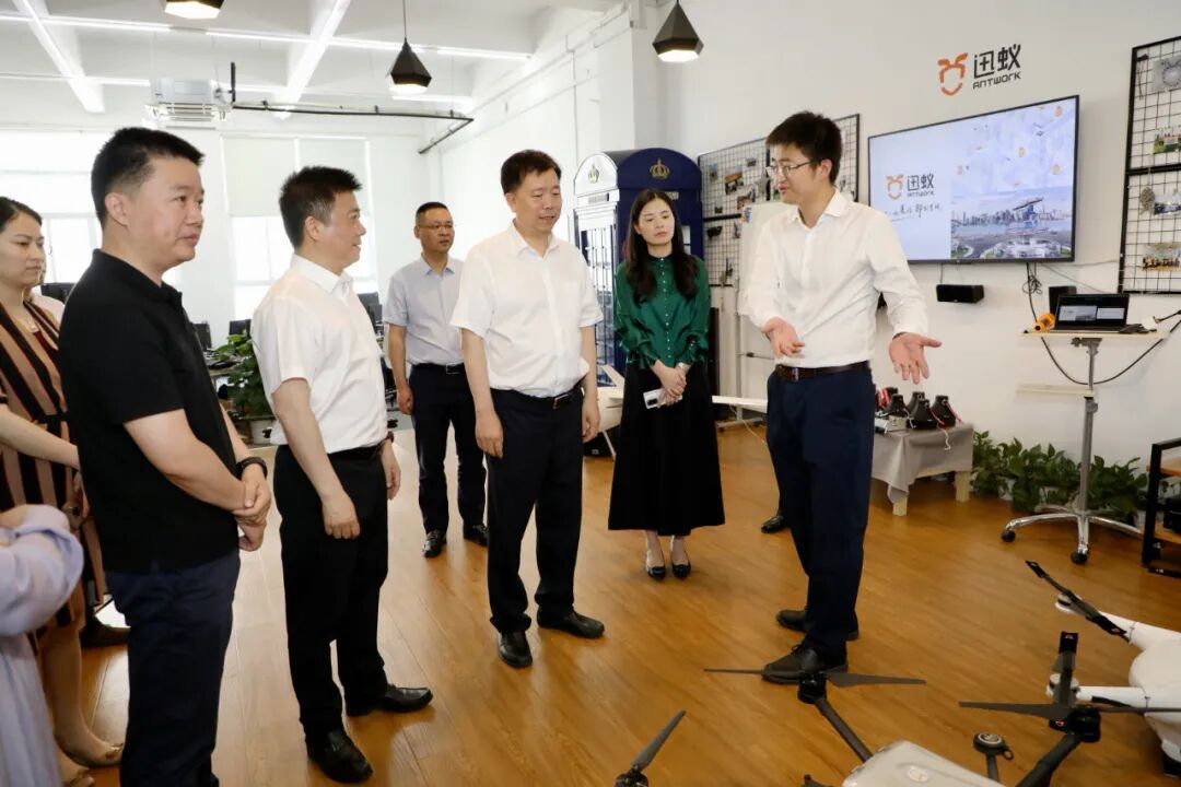 进展厅、看研发、聊应用……张振丰一行先后来到浙江数秦科技、迅蚁网络科技、申昊科技和日风电气等科创企业,了解创新发展情况。