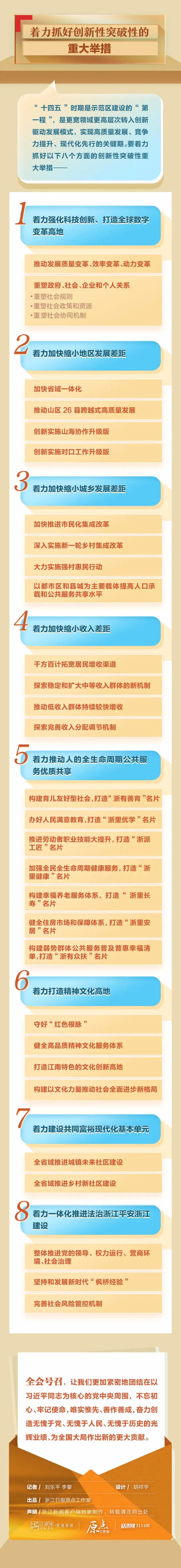 全会强调,示范区建设的大幕已经拉开,新征程已经开启。各级各部门要迅速行动起来,扛起政治担当,层层落实责任,确保习近平总书记重要指示批示精神和党中央决策部署高效落地。要坚持和加强党的全面领导,充分发挥党总揽全局、协调各方的领导核心作用,加强党的建设,全面提升领导干部推进现代化和共同富裕的新能力,坚持全面从严治党,不断深化清廉浙江建设。要进一步解放思想、创新思维,创新致富、勤劳致富、先富帮后富,政府社会企业个人共创共建,循序渐进、由低到高、由局部到整体,以共同富裕新理念推动示范区建设。要构建新型工作体系和推进机制,成立社会建设委员会,建立年度工作推进会机制、清单化推进机制、改革探索和试点推广机制、民情通达机制,确保党中央决策部署全面落地见效。全会强调,我们即将迎来党的百年华诞,这是全党全国政治生活中的一件大事。浙江作为中国革命红船起航地、习近平新时代中国特色社会主义思想重要萌发地,要以更高站位、更深认识、更实举措,守好“红色根脉”,以高分报表庆祝建党100周年。要精心组织庆祝建党百年系列活动,坚持面向基层、面向群众,突出红船味和新时代特征,确保充分展示“重要窗口”形象。要深入开展党史学习教育,深入挖掘好、守护好、传承好习近平总书记留给浙江的宝贵财富,教育引导党员干部把初心使命体现到推动示范区建设各项工作中,确保学出政治定力、担当初心使命。要紧盯全年目标,高质量抓好经济社会发展工作,切实加强民生保障,慎终如始抓好疫情防控,确保稳中向好、稳中有进。要扎实做好市县乡换届,压实各级党委的主体责任,树立鲜明用人导向,确保选出好干部、配强好班子、展现新气象。要全力打好平安护航建党100周年攻坚战,各地各部门特别是主要负责同志要扛起“第一责任人”职责,守土有责、守土负责、守土尽责,确保全省大局稳定。全会号召,全省广大党员干部群众更加紧密地团结在以习近平同志为核心的党中央周围,不忘初心、牢记使命,唯实惟先、善作善成,奋力创造无愧于党、无愧于人民、无愧于历史的光辉业绩,为全国大局作出新的更大贡献。不是省委委员的副省以上领导干部,省纪委委员,各市、县(市、区)委书记和市、县(市、区)长,省部属各单位主要负责人,省第十四次党代会部分代表参加会议。省级各民主党派、省工商联主要负责人应邀参加10日上午的大会。