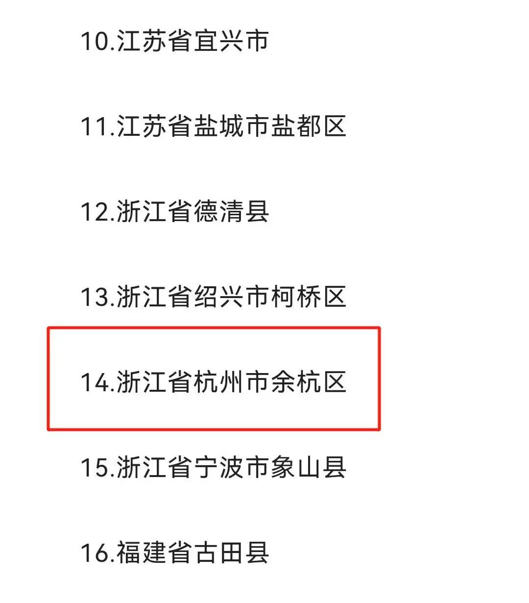 今天,2022年国家乡村振兴示范县创建名单公示公告发布,余杭区成功入围!