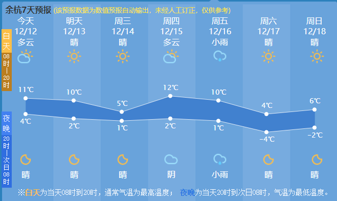 近两日,久违的阳光重新上岗。接下来的一周,余杭天气多以晴天为主,但后续两股冷空气无缝衔接,气温将渐进式下降,最低将达-4℃!