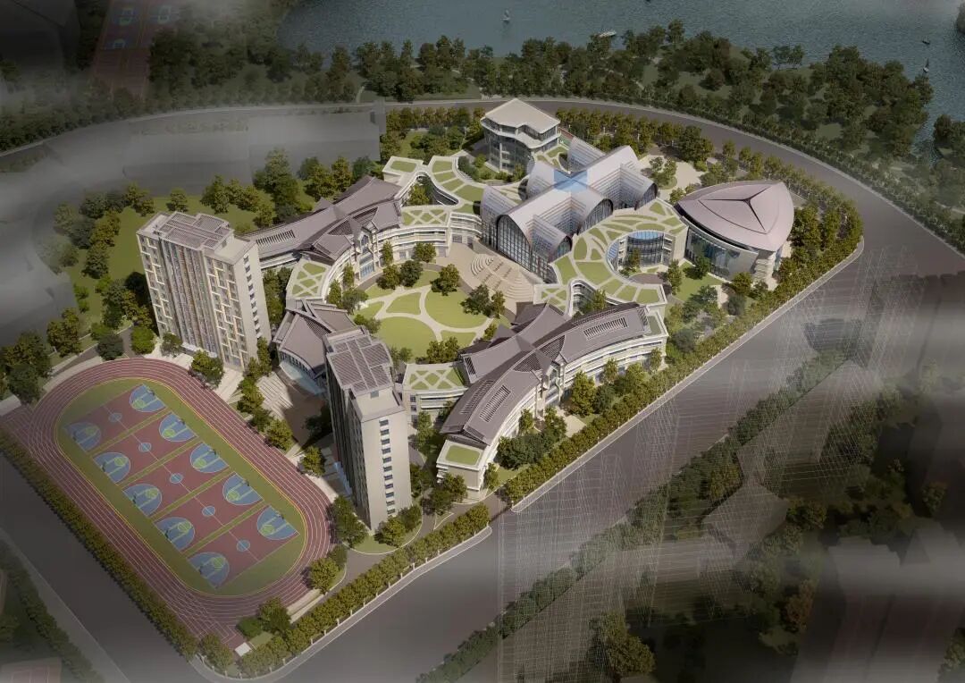 项目位于良渚街道杜甫村,与中国美术学院良渚校区隔河相望。项目总用地面积约6.1万平方米,总建筑面积约7.5万平方米,设计规模54个班。