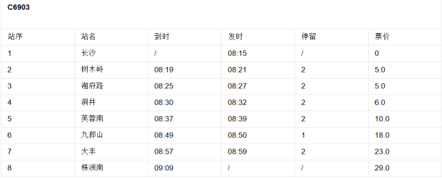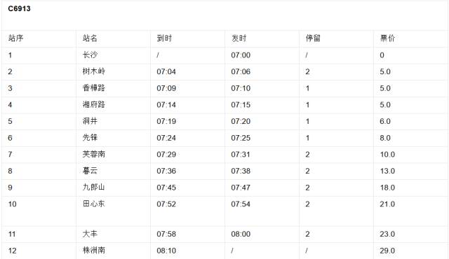 长沙至株洲南的全程票价为29元,学生票为22元,儿童票为15元