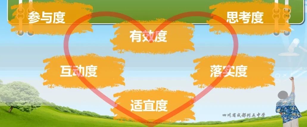 明确提出课堂教学有效性的“六维度”:参与度、互动度、适宜度、落实度、思考度、有效度。
