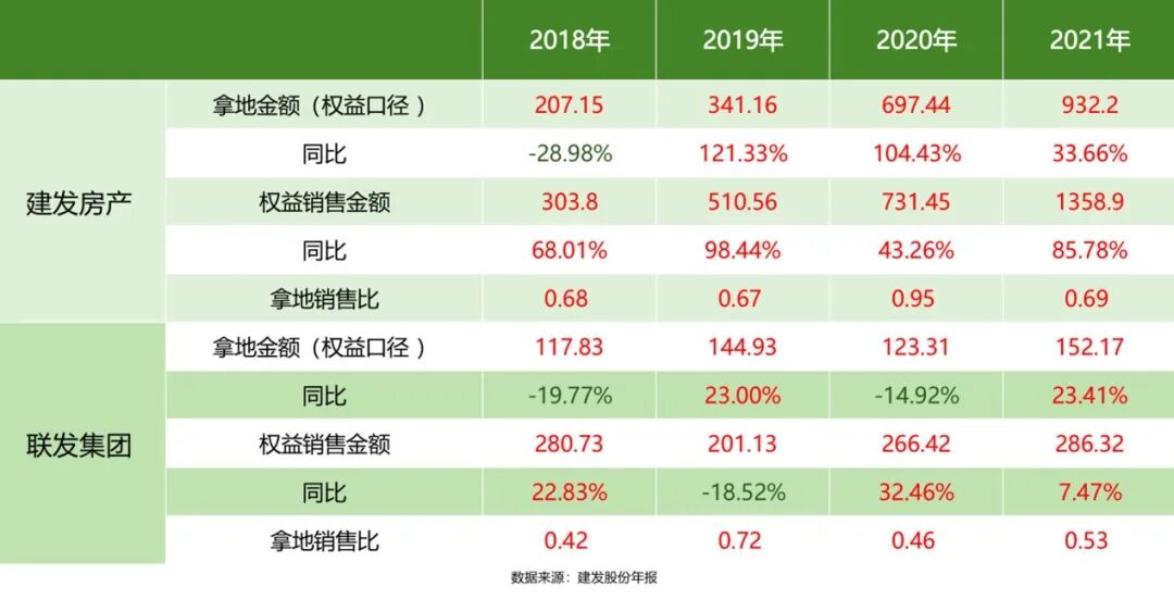▲建发系的建发房产和联发集团,在2021年拿地、销售金额同时攀升。
