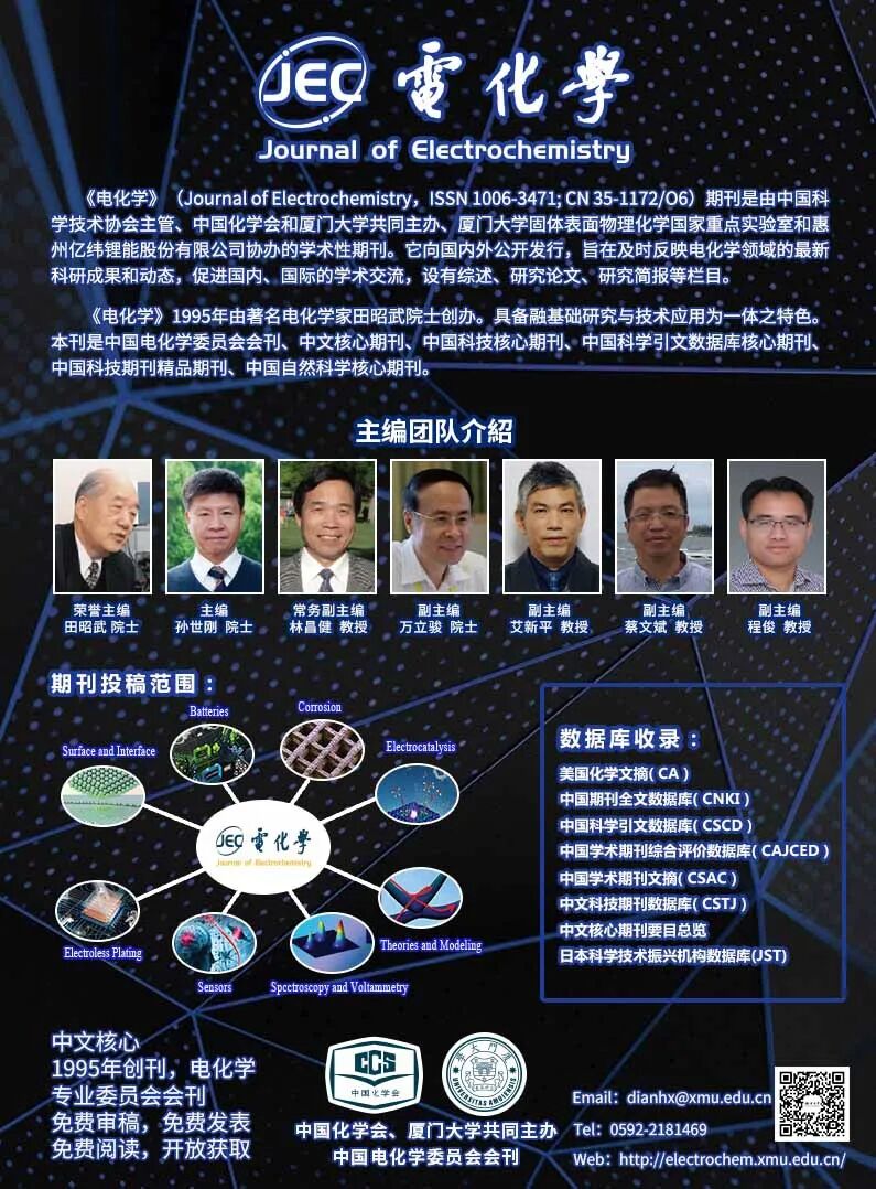 本文发表于《电化学》2020年第26卷第4期《电化学获奖人优秀论文专辑》.点击文末“阅读原文”即可免费下载、浏览PDF全文.