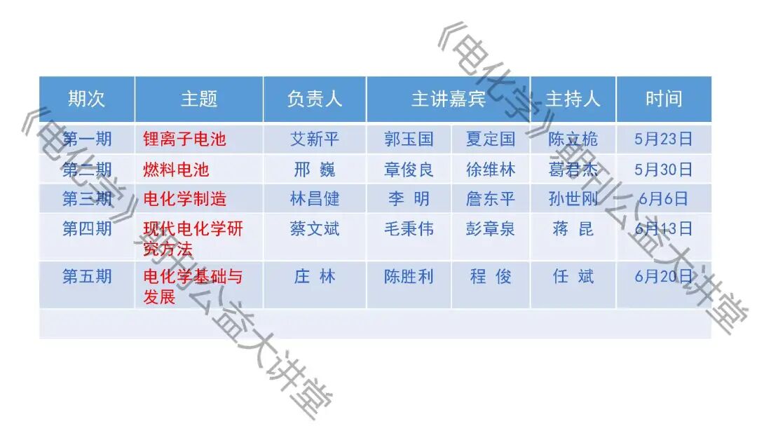 受疫情影响,线上直播课成为了学术交流的重要形式,《电化学》期刊为进一步促进学术交流,在2020年成功举行了“电化学期刊公益系列讲座”,公益讲座侧重基础、方法、应用、专业、科普、前沿的核心元素。本期回顾的是来自本刊副主编、武汉大学艾新平教授题为“动力电池安全性问题及改善技术”的精彩讲座。