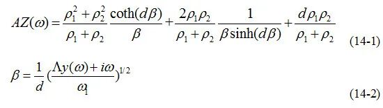 ,C1=AScC为单位长度电容,C为单位面积电容,Sc为单位体积界面面积,ρ1(σ1)和ρ2(σ2)分别为电极基体和孔隙电解质电阻率(电导率)。r1=ρ1/A为单位长度电极基体电阻,r2=ρ2/A为孔隙电解质单位长度电阻。