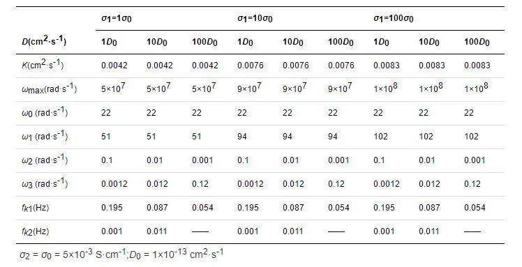 ① 场扩散常数K、特征频率ω0、ω1和ωmax,这些特征参数均不变,表示与上述特征参数相关的过程不受固相扩散系数D变化的影响。