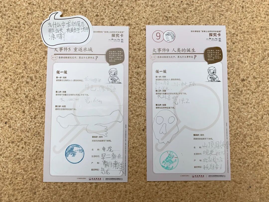 自然科学实验室线下活动包括了“九大事件跳房子”“化石探究实验”“深博士100问”“深博士阅读角”“深博士放映”等五大活动。