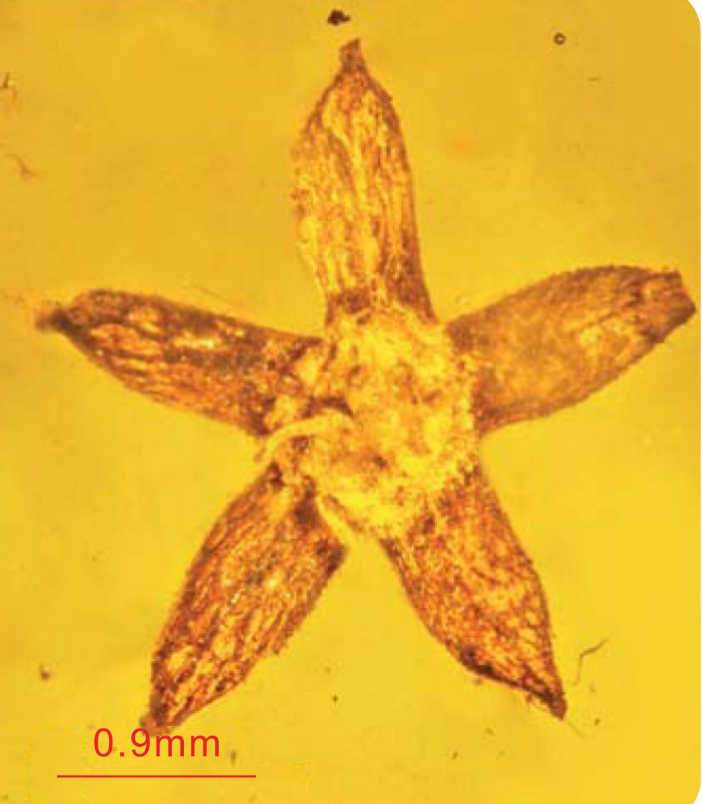 一些缅甸琥珀中的1亿年前的花朵,每朵花都有5片完全展开的花萼,花的细微结构保存完好。以上的穿越便是科学家联想这些琥珀的形成过程。