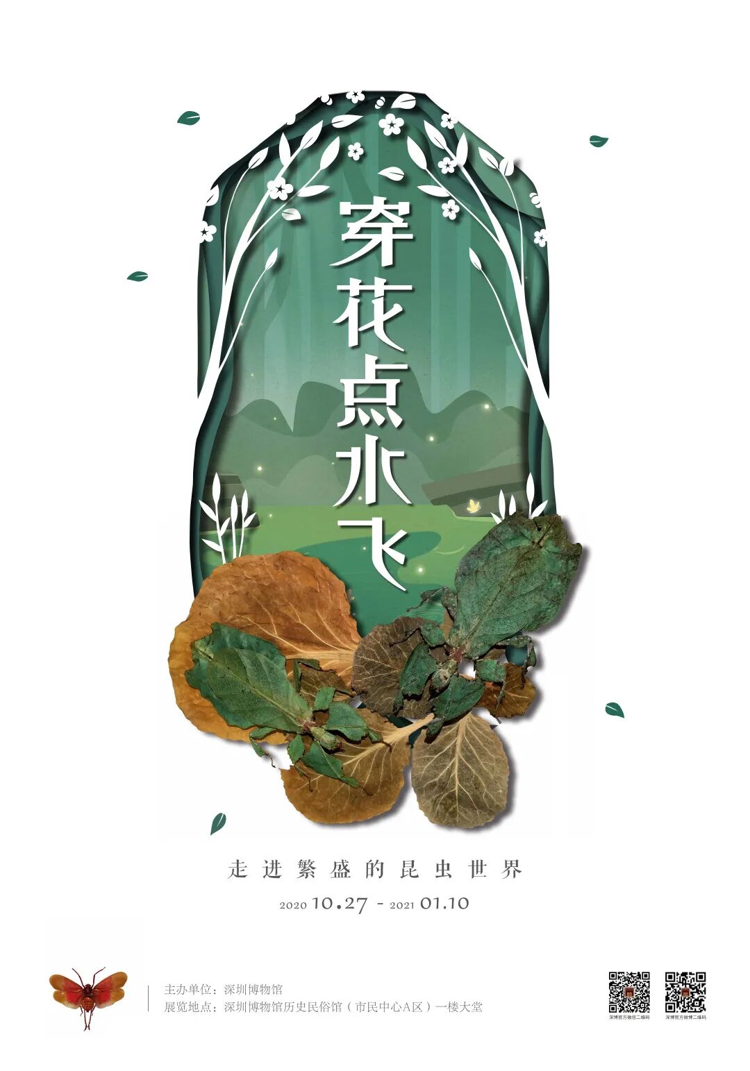 或:进入“深圳博物馆”官方微信公众号菜单栏-【看】-【虚拟展厅】-【穿花点水飞——走进繁盛的昆虫世界】,即可观赏展览!